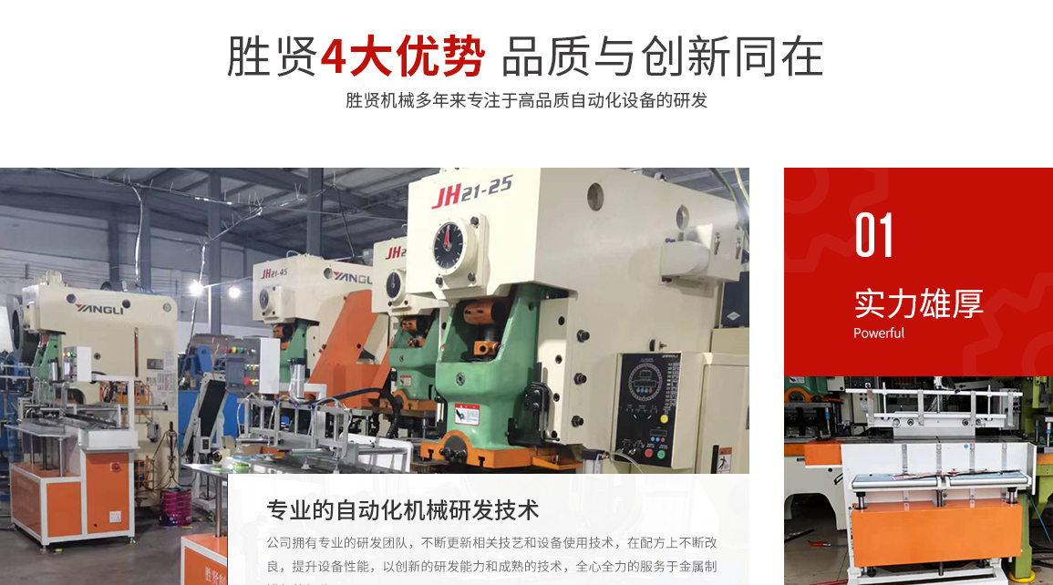 東莞市勝賢機械設(shè)備有限公司,是一家專業(yè)從事金屬制罐包裝行業(yè)的整套自動化設(shè)備和模具開發(fā)、制造與銷售的公司,擁有成熟的技術(shù)和創(chuàng)新開發(fā)能力。我們擁有有一批多年從事設(shè)計、研究開發(fā)的工程師,和設(shè)備、模具制作的技術(shù)人才。不斷推進制罐行業(yè)向高效、環(huán)保、節(jié)能、操作簡易化的方向發(fā)展。